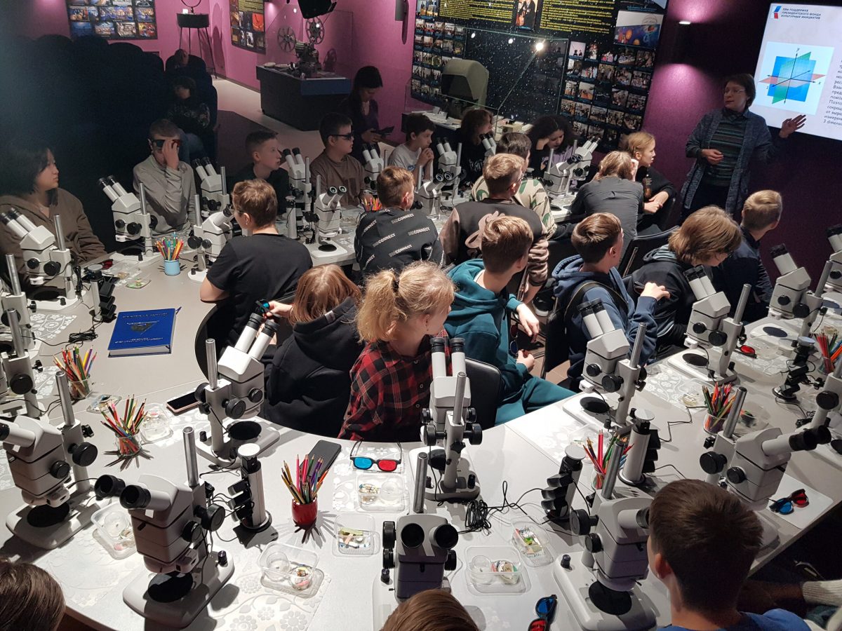 Многие школьники впервые в жизни соприкоснулись с наукой оптикой на экскурсии «Путешествие школьников в мир оптики и звезд» в таком интересном интерактивном формате. Подавляющее большинство детей первый раз в жизни смотрели в стереоскопические микроскопы, многие впервые попали в планетарий, а возможность путешествия в шлемах виртуальной реальности вызывала особо сильное желание поскорее оказаться внутри объемного пространства. Эти технологии являются не только современными, но одновременно все еще малодоступными в обычной жизни. Поэтому эти технические средства, материалы, приборы и мастер-классы были направлены на одну цель, познакомить и увлечь детей оптикой. Также программа познакомила школьников с профессиями, востребованными на оптическом производстве. Нужно было очень постараться, чтобы рассказать им просто и увлекательно о сложных вещах, рассказать о родном городе и его градообразующем предприятии, зажечь интерес к его деятельности. В юном возрасте школьники не прочь поиграть, им хочется потрогать то, что заинтересовало, с детской непосредственностью задают они свои многочисленные вопросы. Проектная команда постаралась учесть возрастные особенности детей и удовлетворить их природное любопытство. В комплексной программе были использованы самые современные креативные технологии, которые воздействуют на все органы чувств и многократно усиливают восприятие всего увиденного и услышанного. Тестирование в фокус-группах проводилось не менее 3 раз в каждой целевой группе и помогло определить слабые места в знаниях школьников, что помогло команде проекта обратить особое внимание на наиболее трудные для восприятия детьми моменты и сделать на них особый акцент для лучшего усвоения материала. Активное информационное сопровождение проекта на разных платформах активно знакомило широкую аудиторию с ходом реализации проекта, его потенциалом в образовании, детском туризме и профориентации школьников.
