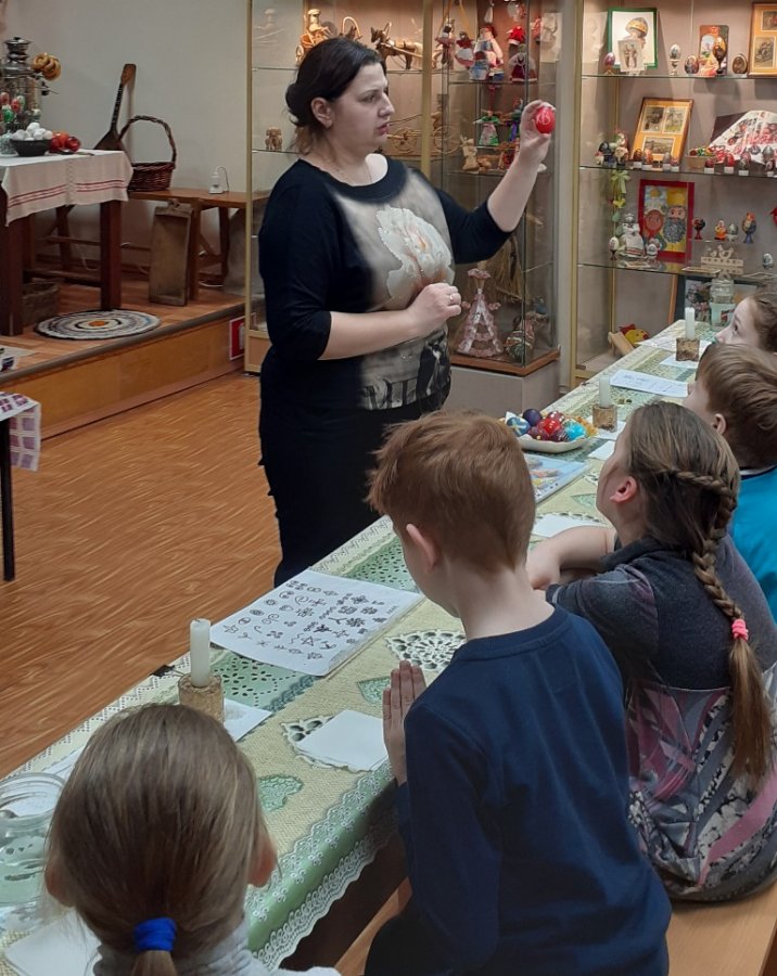 В усадебной Людской прошло первое занятие мастерской по росписи пасхальных яиц, которое посетили второклассники гимназии № 7. На мастер-классе «Подарок к Пасхе» ребята узнали об истории праздника, услышали легенду о том, откуда взялась традиция красить яйца, какие еще есть способы их украшения.