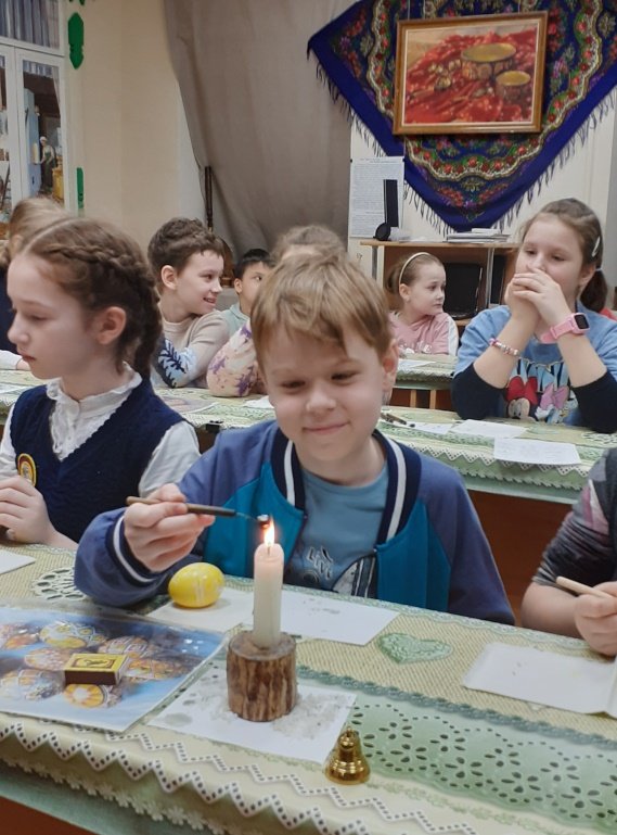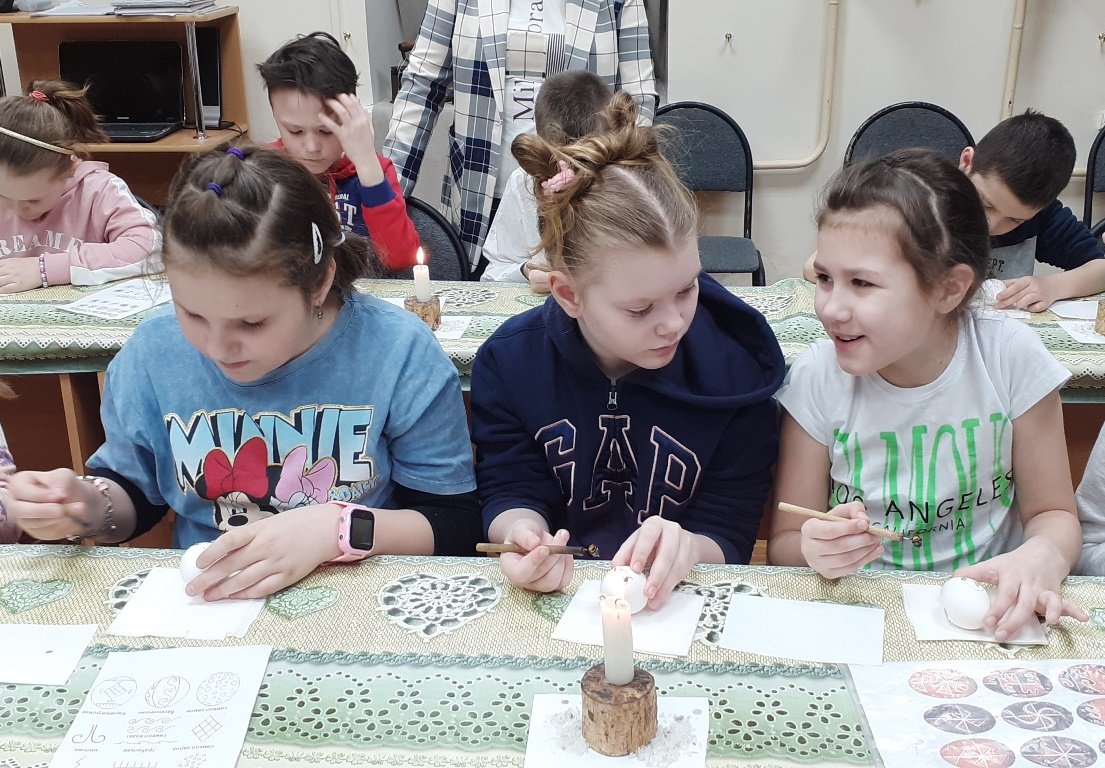 На практической части занятия дети расписывали яйца по старинной технология писанкарства – воском с помощью специальных традиционных инструментов.
