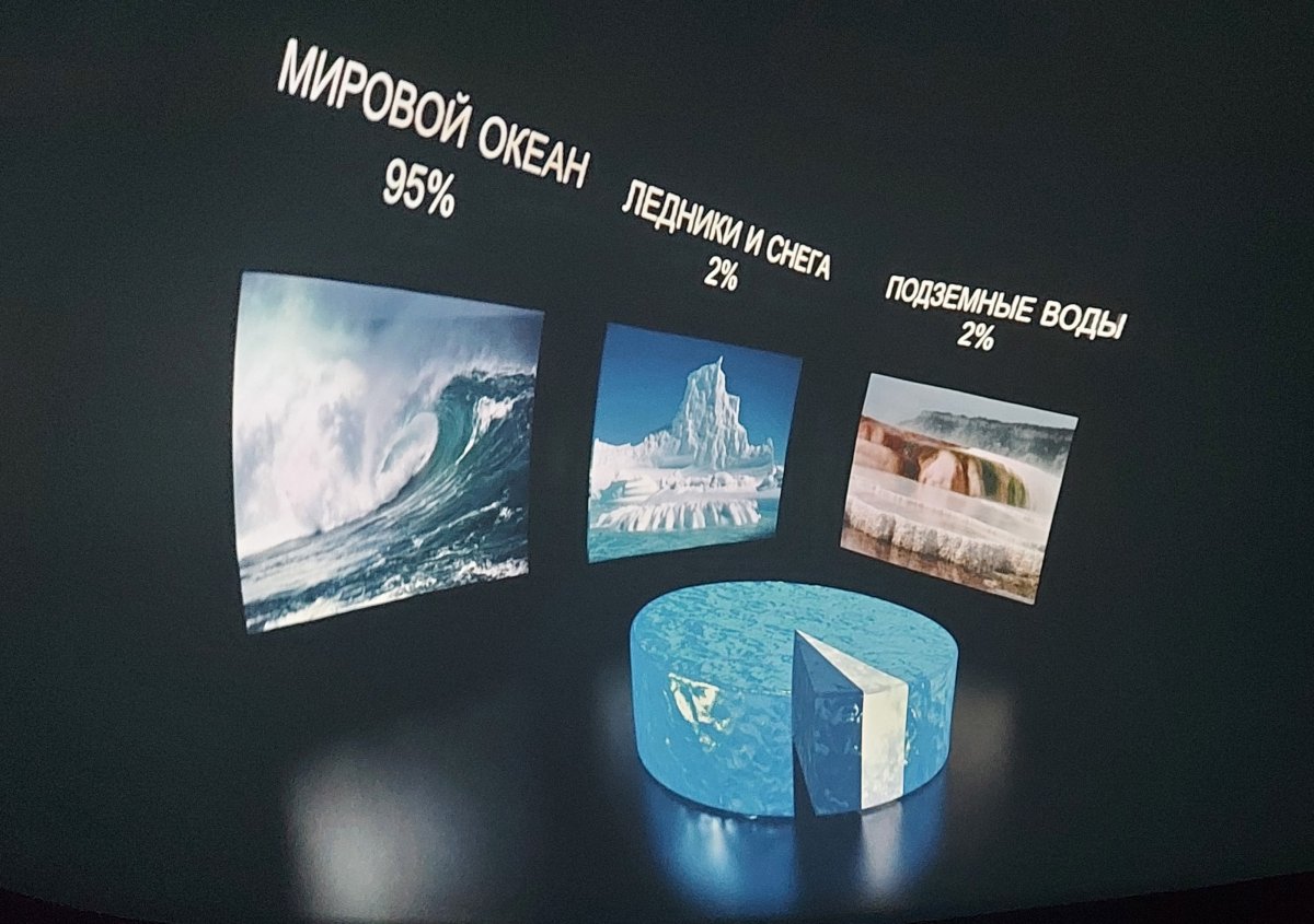 Затем школьники совершили 3D-экскурсию по России — от Арктики до субтропиков, от Калининграда до Камчатки, во время которой познакомились с уникальными природными объектами, удивительными ландшафтами и многообразным животным миром. За 10 минут они смогли полюбоваться цветением лотоса в дельте реки Волга, посмотреть с высоты птичьего полета на озеро Байкал, понаблюдать за огромным водопадом на плато Путорана, заглянуть в жерло вулкана и увидеть многое-многое другое. Виртуальная экскурсия предоставлена Лыткаринскому планетарию Русским географическим обществом. Наверное, человеческой жизни не хватит, чтобы объехать эти красивейшие места России, но планетарий позволяет каждому его посетителю совершить это невероятное путешествие! Не зря говорят, что планетарий — это и кино, и театр, и учебный класс одновременно. А еще он дает эффект полного погружения, где зритель становится участником другой реальности.