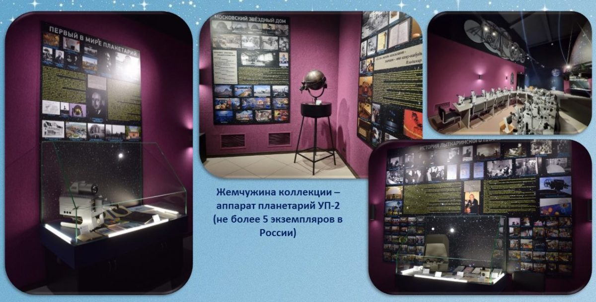 Жемчужиной коллекции является уникальный аппарат-планетарий УП-2 в рабочем состоянии, который был изготовлен мастерами экспериментальной фабрики наглядных пособий Московского планетария в 1990-е годы. В настоящее время в России их осталось всего 3-4 единицы. Этот аппарат был рабочим инструментом в самом первом в Лыткарино планетарии, располагавшемся в стенах Лыткаринского историко-краеведческого музея.