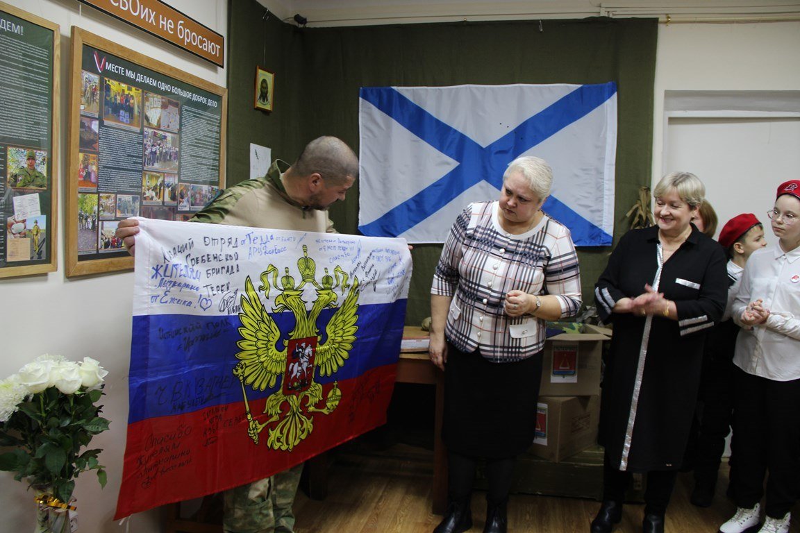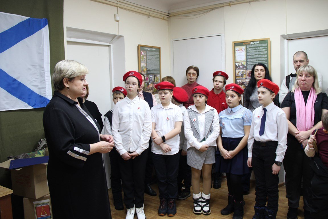 Хранитель фондов музея Людмила Михайловна Пахомова познакомила гостей с новой выставкой. Она отметила, что в настоящее время жители разных регионов нашей страны объединяются для сбора гуманитарной помощи и поддержки Российской армии в зоне СВО. Суть этой акции состоит не только в том, чтобы оказать дополнительную благотворительную помощь нашим бойцам, не менее важно поддержать их боевой дух. Солдаты и офицеры должны чувствовать, что они не одни, что в них верят, что за ними есть надежный тыл. А нам, за линией фронта, необходимо ощутить причастность, важность происходящего, разделить с нашими воинами радость будущей Победы.