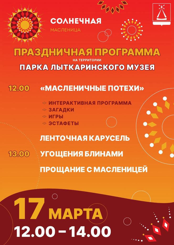 17 марта с 12:00 до 14:00 в парке усадьбы Лыткарино состоятся «Масленичные гулянья»