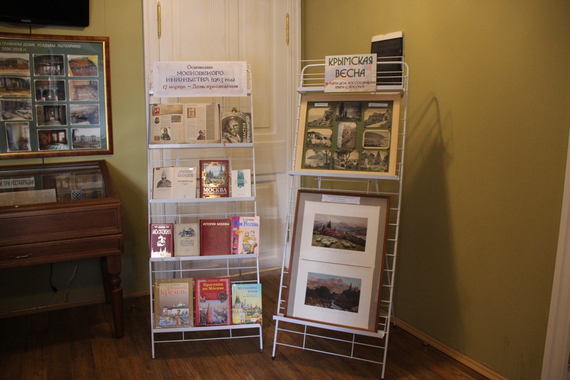 К этим датам в главном доме усадьбы «Лыткарино» были представлены посетителям две выставки: книжная выставка «Основание Московского княжества» и художественная выставка «Крымская весна».