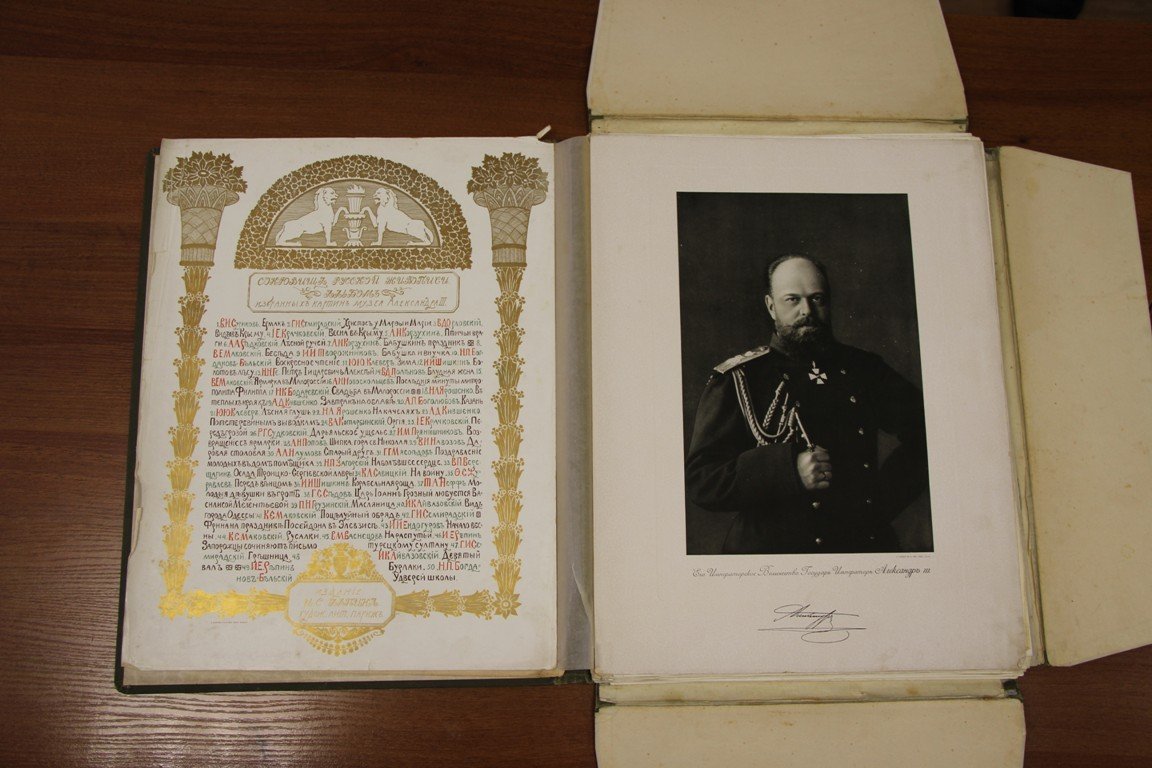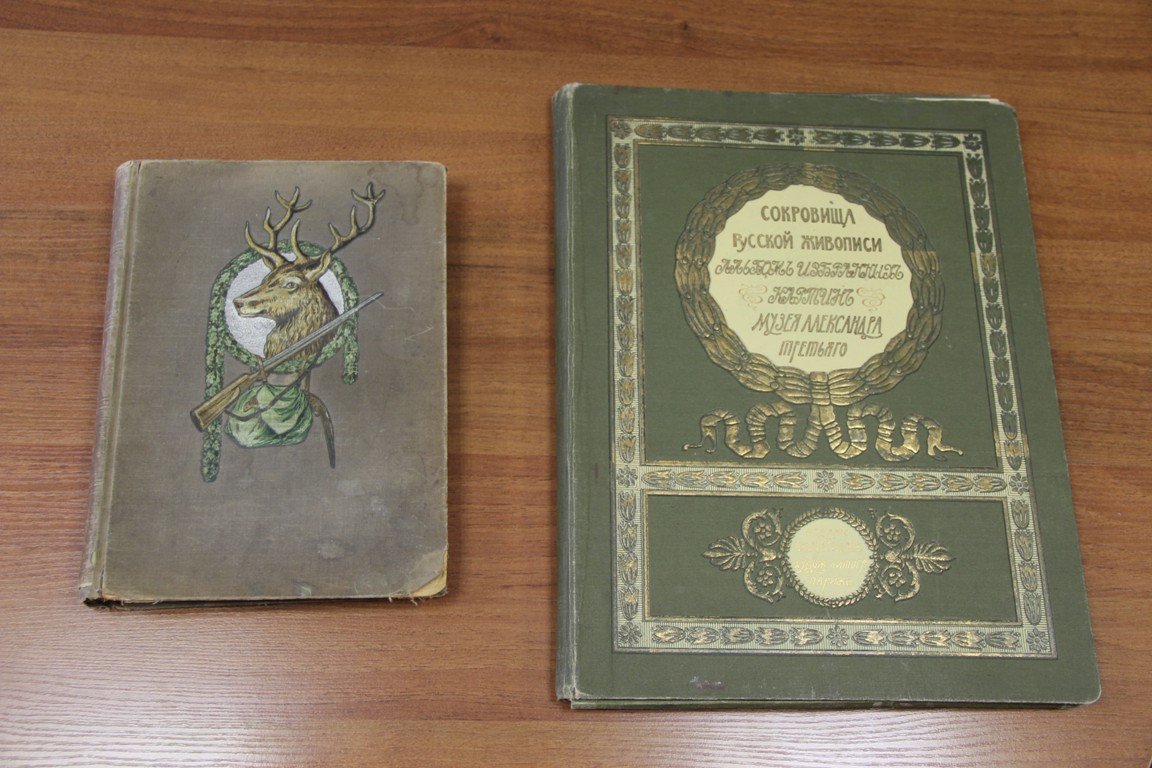 На втором стенде представлены две цветные репродукции картин из редкого альбома избранных картин музея Александра III, который издавался в Париже Лапиным в 1910 году. Этот альбом также подарен музею жительницей города.