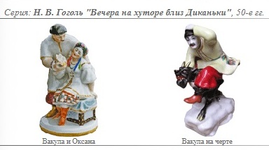 По мотивам повести Н.В. Гоголя  «Ночь перед рождеством» Ленинградский фарфоровый завод им. Ломоносова  в 1950-е гг. издал также две статуэтки  в серии   «Н.В.Гоголь «Вечера на хуторе близ Диканьки»»: «Вакула и Оксана» (Черевички) и знаменитую фигуру «Вакула на черте».