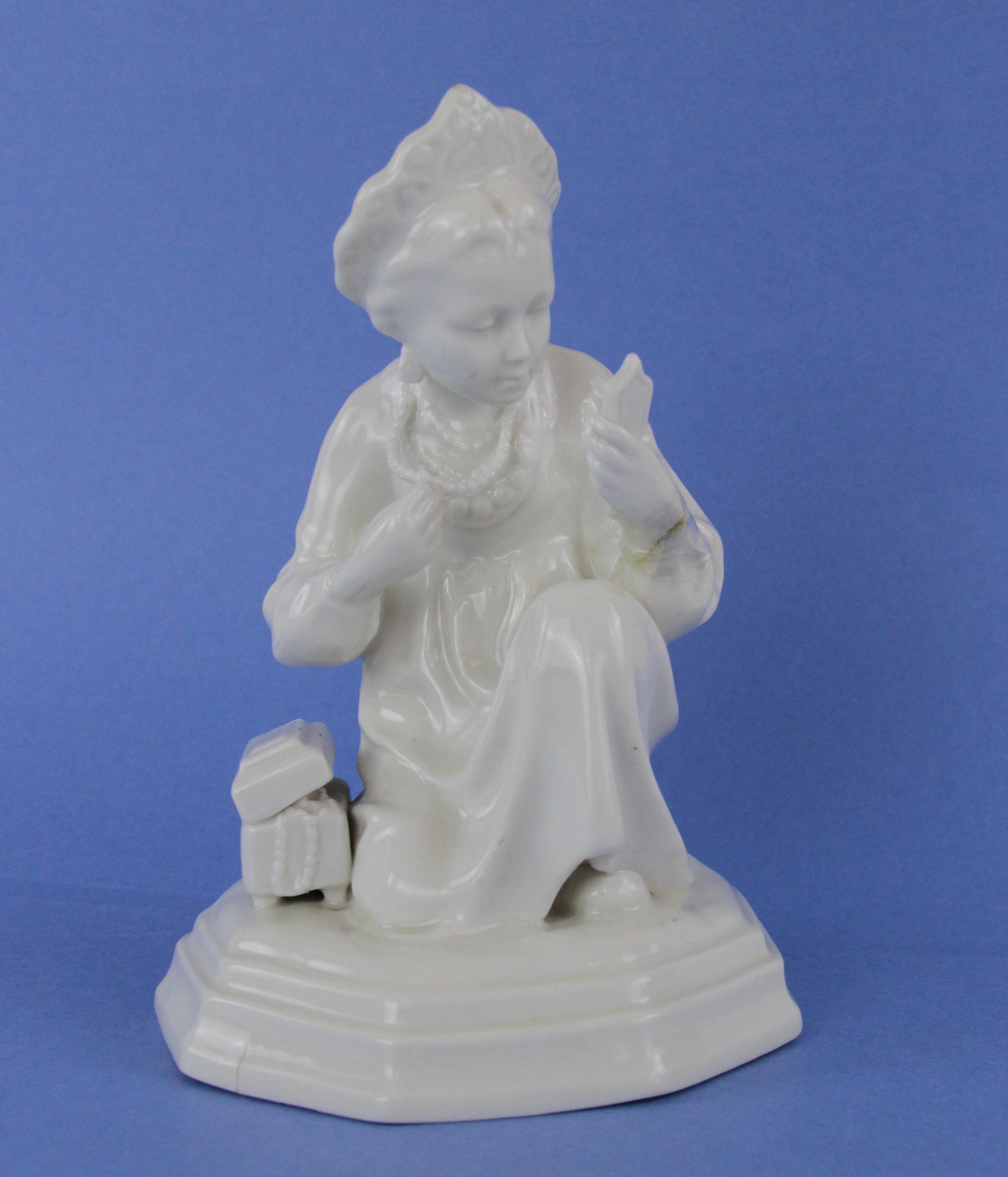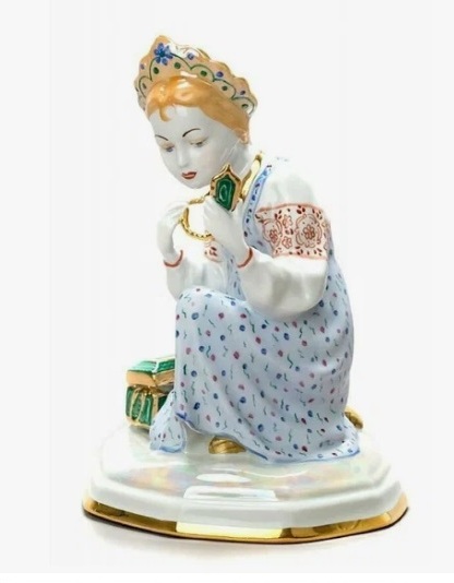Это фигурка высотой 21 см,  ослепительно белого цвета, на многогранной подставке. Издана она в  варианте, так называемого «белья», т.е. фарфора без росписи, но  покрытого белой глазурью.