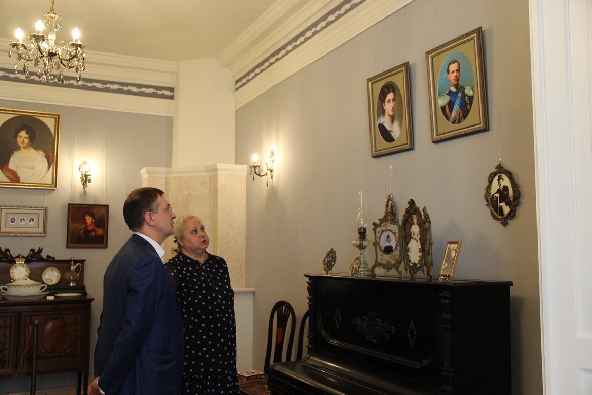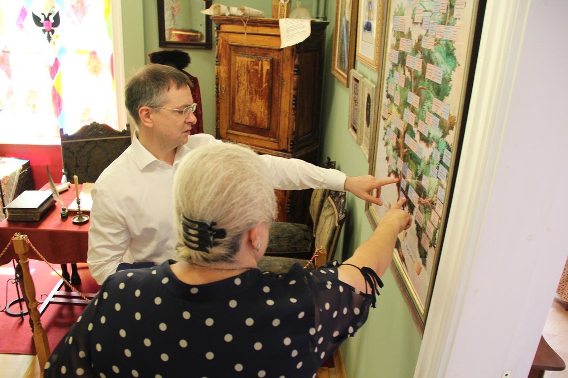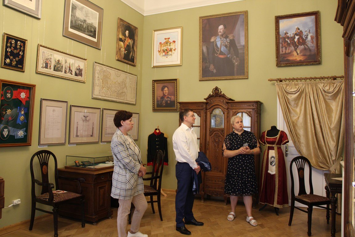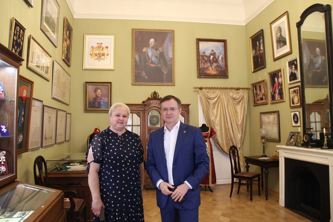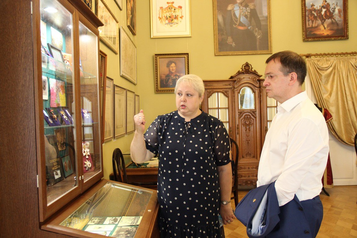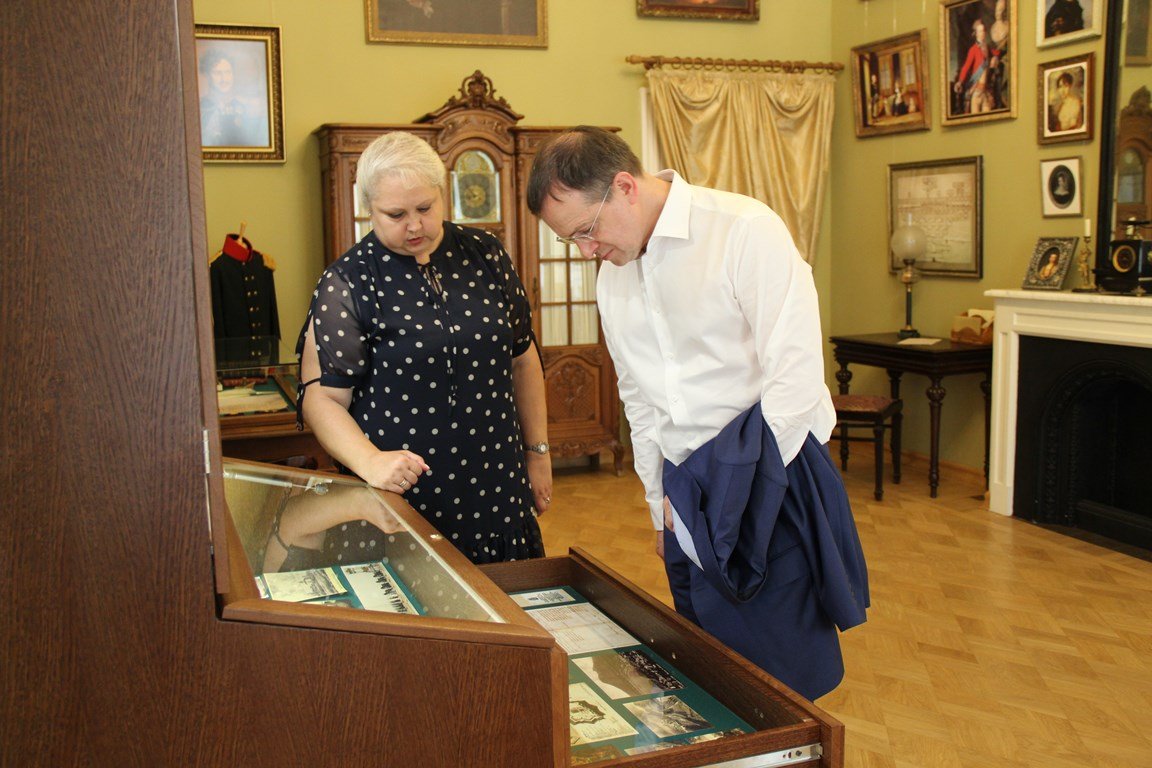 Директор музея Надежда Голубева познакомила гостя с историей усадьбы Лыткарино и биографиями ее владельцев. В первую очередь – Н.М. Зотова и одного из крупнейших военных и государственных деятелей Российской империи первой половины XIX века А.И. Чернышёва.