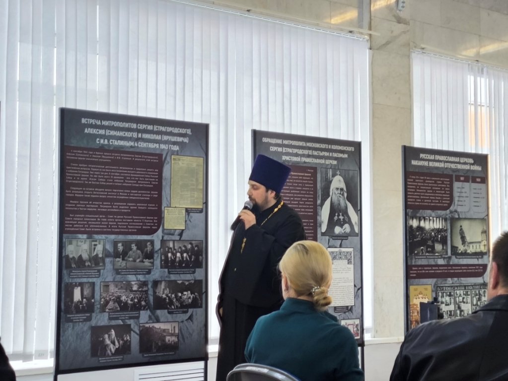 Перед панельной дискуссией благочиние Чеховского церковного округа представило выставку из 17 информационных стендов на тему «Патриотическое служение церкви в годы Великой Отечественной войны», рассказывающих о том, как существовала вопреки гонениям местная церковь, как вынуждены были ее представители в годы войны  держать оборону – военную и духовную, не отрекаясь от Бога даже под угрозой смерти.