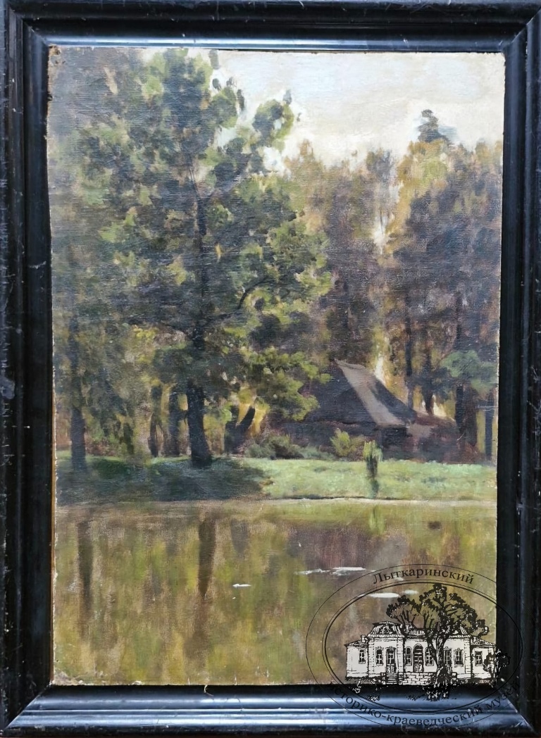 Недавно фонды нашего музея пополнила живописная картина, представляющая собой пейзаж с прудом, прибрежным парком и небольшим зданием на берегу. Произведение было передано из Государственной Третьяковской галереи, куда оно поступило в 1938 году с авторством Исаака Ильича Левитана на персональную выставку знаменитого российского художника.