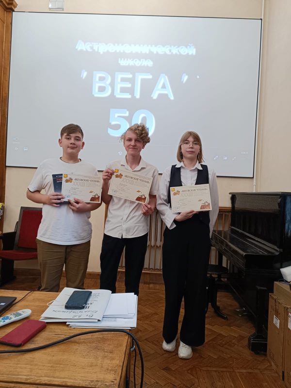 В Москве в Государственном астрономическом институте им. П.К. Штернберга МГУ им. М.В. Ломоносова 18 мая 2025 года состоялась Открытая юношеская реферативно-практическая астрономическая конференция Московского региона «Веговские чтения — 33». Лыткаринские школьники из МОУ СОШ №2 и МОУ Гимназия №7 под руководством учителей физики О.В. Косолаповой и М.Н. Акимовой приняли в ней участие, некоторые из ребят ранее становились призерами Лыткаринских чтений по космонавтике, астрономии и оптике «Сила света». Результатом выступления Лыткаринской команды на «Веговских чтениях» стали два первых и три третьих места!
