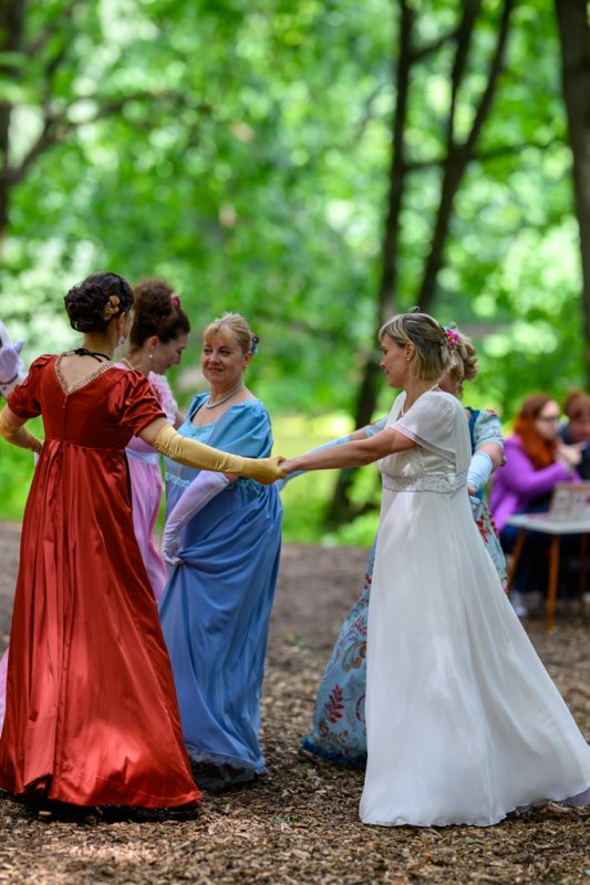19 июля Лыткаринский музей вместе с клубом исторического танца «Лыткаринский Реверанс» приняли участие в рамках Музыкального фестиваля в усадьбе Быково. Им выпала почетная миссия открыть его парадным выходом под музыкальное сопровождение. Музейный сотрудник Ирина Пакулова рассказала о богатой истории балов и танцев, ставших обязательным атрибутом светской жизни дворян в XIX веке.