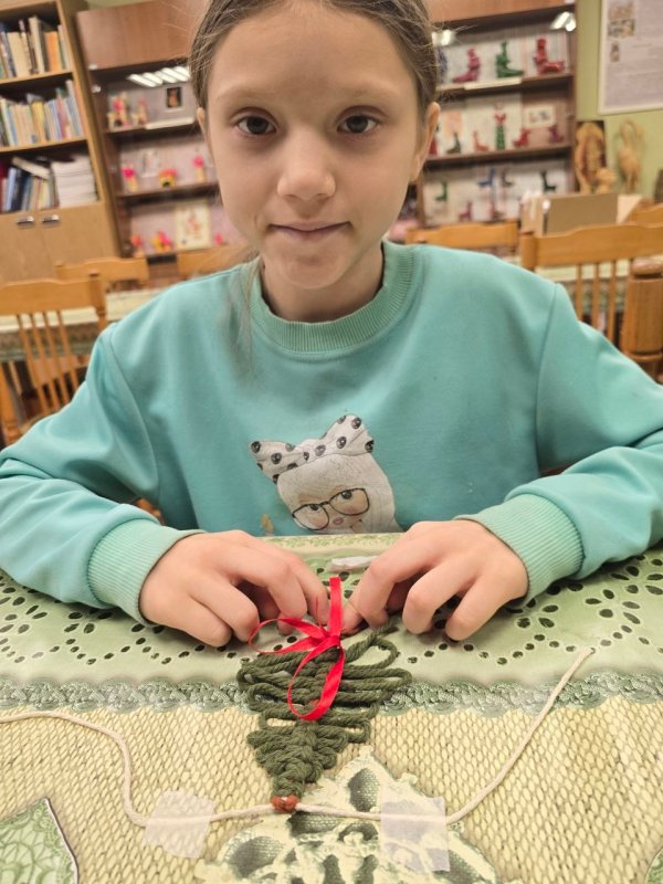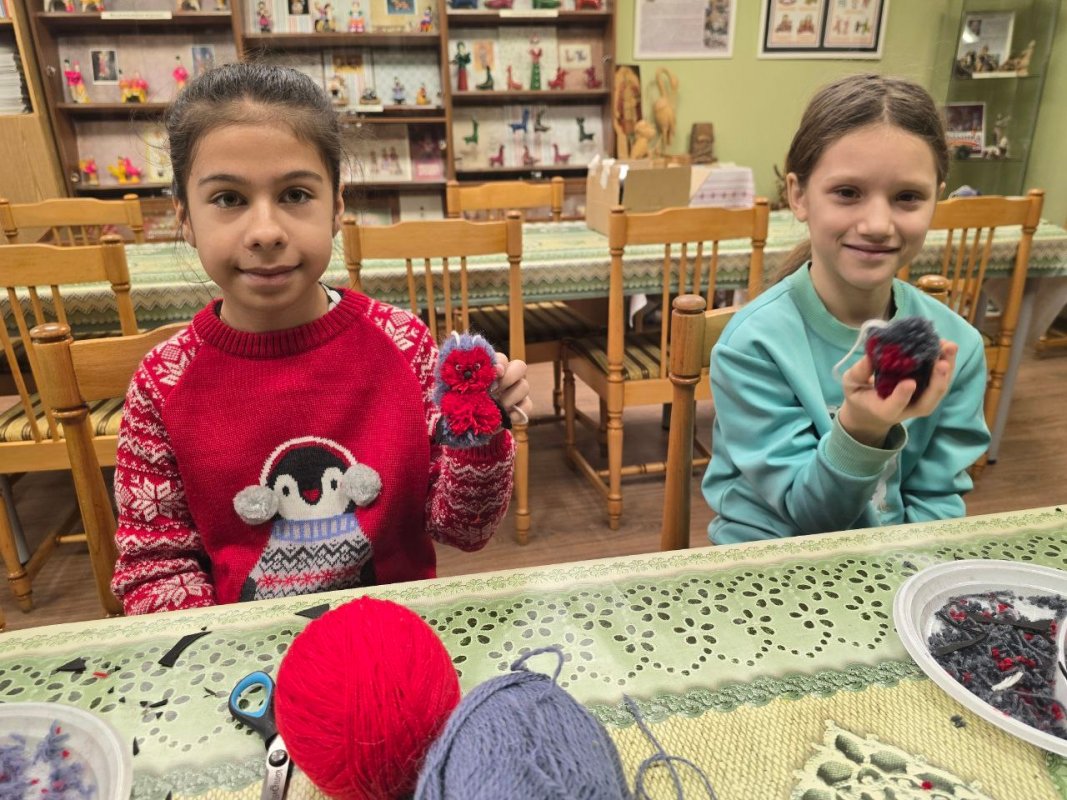 На мастер-классах по декоративно-прикладному искусству посетители смогли научиться создавать объемного снегиря из пряжи и ниток, а также поделку в виде елочки в технике макраме.