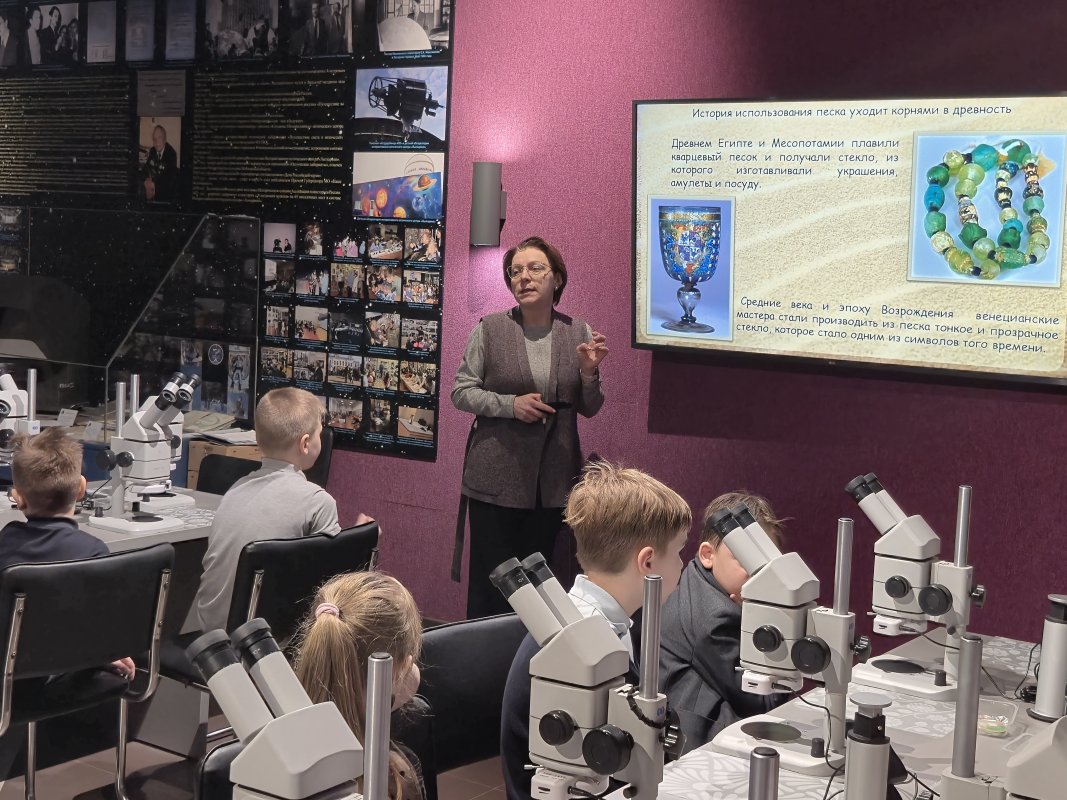 На мастер-классе «По странам и континентам» дети знакомятся с многообразием песка через увлекательный рассказ и практические эксперименты. Ребята рассмотрят разные виды песка под микроскопом, узнают о черных вулканических частицах, белом коралловом песке Мальдив и магнитном песке Камчатки и других не менее интересных образцах. Отдельное внимание уделено месторождению кварцевого песка «Волкуша» в Лыткарино, благодаря которому вырос Лыткаринский завод оптического стекла и сам город.