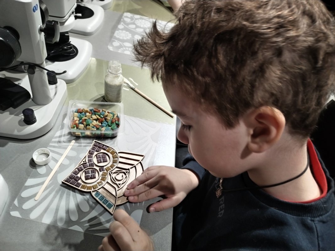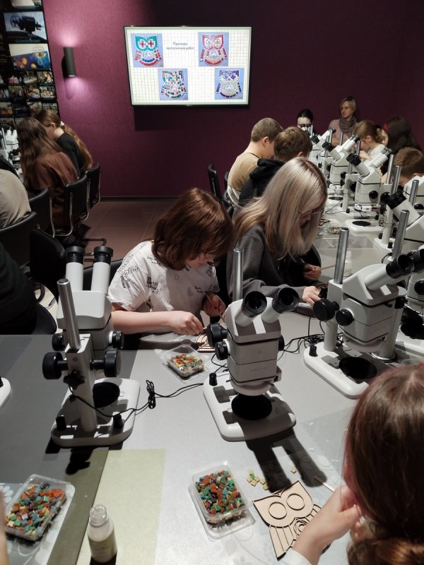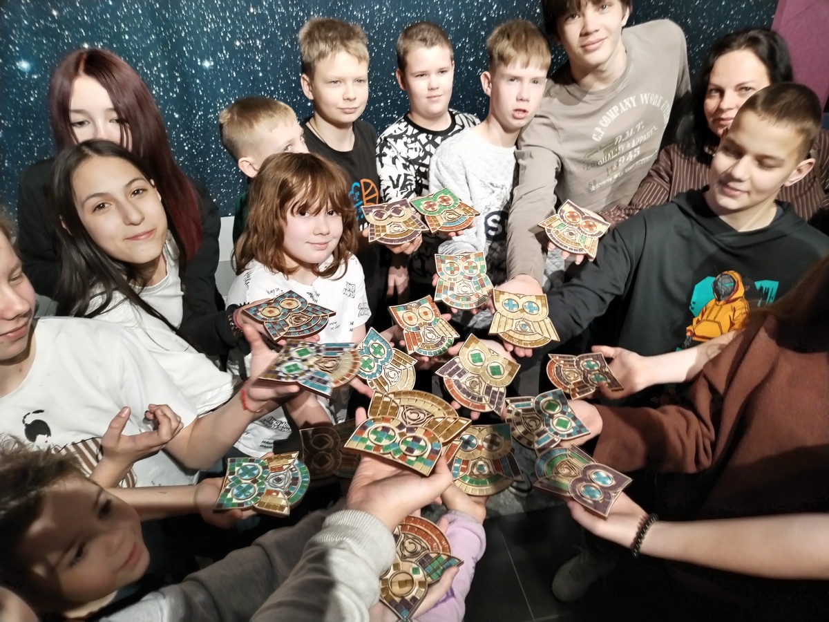 Практическая часть мастер-класса оказалась особенно увлекательной: ребята создавали собственную мозаичную сову. Работали с большим энтузиазмом, полностью погрузившись в творческий процесс. По окончании занятия каждый участник получил свою работу в подарок и ушёл с отличным настроением. В книге отзывов педагоги поделились своим мнением о проведенном мероприятии: «Спасибо за яркий и увлекательный мастер-класс «Удивительная мозаика» в Лыткаринском планетарии. Ребята узнали о возникновении мозаичного искусства. Впечатлившись увиденным, ребята создали свои необычные и красочные мозаики в виде совушек. Надеемся на дельнейшее сотрудничество и придем к вам обязательно ещё».