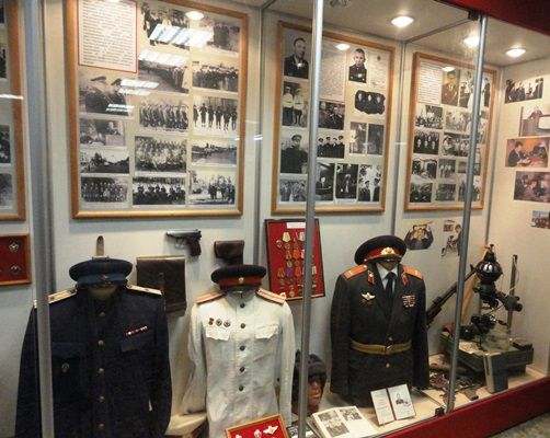 Сотрудники полиции показали научным сотрудникам свой музей, созданный несколько лет назад, и познакомили с его экспозицией. В ней представлена военная форма, оружие, ордена и медали, книги, документы и многие другие военные атрибуты разных периодов.