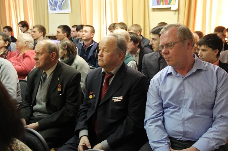 Перед гостями выступил ветеран труда Виктор Николаевич Павленко. В настоящее время он является директором музея ЛМЗ «Сатурн», а всего на предприятии в разных должностях (в т.ч. директором) проработал 55 лет. Он поделился своими воспоминаниями о создании монумента Ю.А. Гагарину, открытого 4 июля 1980 года на площади Гагарина в Москве. В создании монумента принимали участие несколько предприятий и организаций и, в том числе, коллектив ЛМЗ «Сатурн».