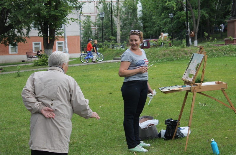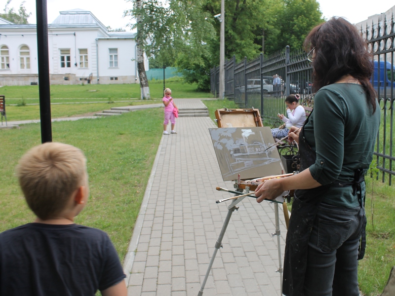 В солнечный воскресный день 22 июня в парке усадьбы «Лыткарино» собрались на пленэр участники творческого проекта «Дома с историями». Руководитель проекта Сайда Афонина — известный московский художник, работающий в жанре реализма. Она окончила Российскую Академию живописи, ваяния и зодчества, принимала участие в многочисленных выставках. С. Афонина знакома лыткаринцам по выставке ее работ, которая проходила в Лыткаринском музее в марте прошлого года. Пленер — это особый вид искусства. Работы, как правило, быстрые и характерные. Художнику необходимо уловить состояние и таинство природы в момент времени и передать это на холсте или бумаге.