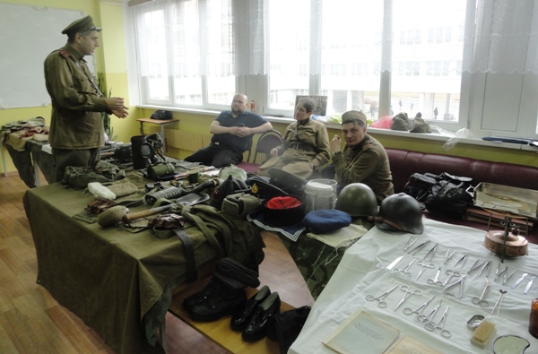Поскольку конференция была посвящена событиям военных лет, то и торжественная атмосфера, заданная литературно-музыкальной композицией в исполнении учащихся гимназии № 7, царила на этом форуме Памяти. На нем присутствовали почетные гости из Военно-исторического клуба, которые организовали выставку, состоящую из предметов формы, оружия, боеприпасов, медицинского оборудования, книг времен Великой Отечественной войны. Также были представлены стенды с материалами, которые хранятся в школьных музеях боевой славы.