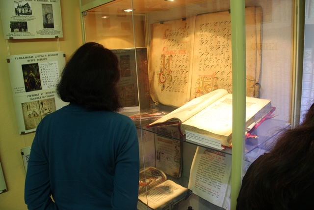 Множество фотографий и иллюстраций, рассказ экскурсовода Шавель Л.В. позволили посетителям лучше представить себе, какой длинный путь прошла книга в своем развитии, каким кропотливым трудом создавались на Руси кладези мудрости – книги, которые накопили и сберегли для нас бесчисленные поколения.