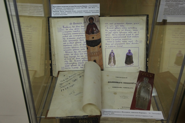 Старинные книги, в том числе и рукописные, относящиеся ко времени правления Ивана Грозного (XVI век), и книги дораскольного периода были любезно предоставлены на выставку Музейно-библиотечно-архивным отделом Московской митрополии РПСЦ и Тураевским храмом. Из фондов Лыткаринского музея выставлены антикварные предметы и книги XVIII и XIX веков.