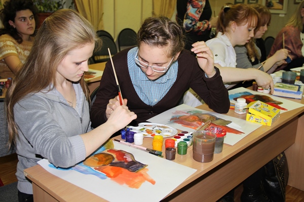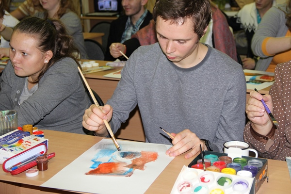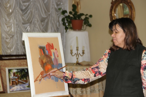 На мероприятие пришли те, кто хотел получить уникальный опыт общения с выдающимся художником, работы которого неизменно восхищают своим талантом. Участниками удивительных таинств мастера живописи Сайды Афониной стало много гостей, в том числе студенты промышленно-гуманитарного колледжа вместе со своим преподавателем О.Н. Рахутиной.
