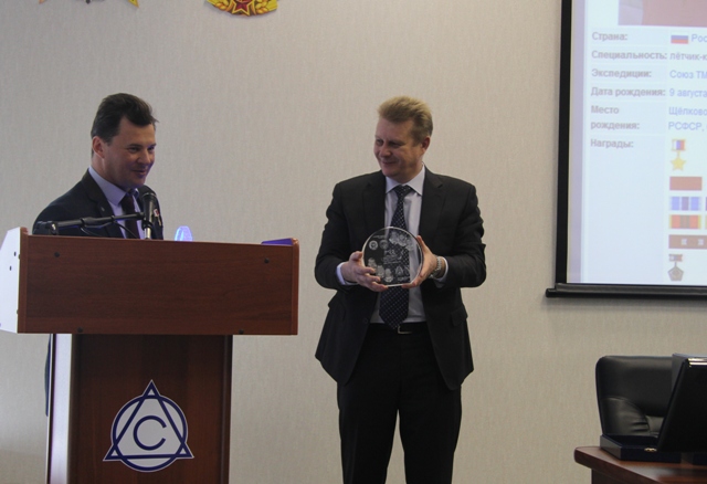 Глава города Е.В. Серёгин напомнил всем присутствующим о славных трудовых победах лыткаринских предприятий авиационно-космической отрасли, поблагодарил гостя за встречу и вручил ему памятный подарок. Грамотами Главы города были награждены исполнительный директор С.П. Белоусов и коллектив Лыткаринского завода оптического стекла за активную работу с детьми и молодежью по популяризации достижений предприятия и науки в области оптики, астрономии и космонавтики.