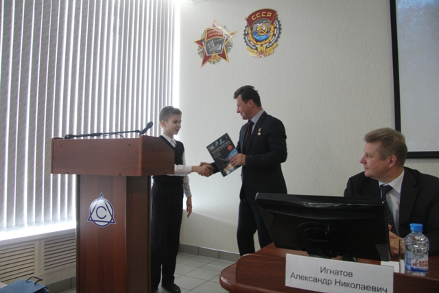 Победители Юношеских реферативных чтений, занявшие 1-е места в своих номинациях, имели честь представить свои доклады перед космонавтом и ребятами из других школ. Почетный гость Роман Романенко с большим вниманием следил за выступлениями ребят и отметил высокий уровень докладов. От себя он вручил чемпионам книгу о российской космонавтике с автографом.