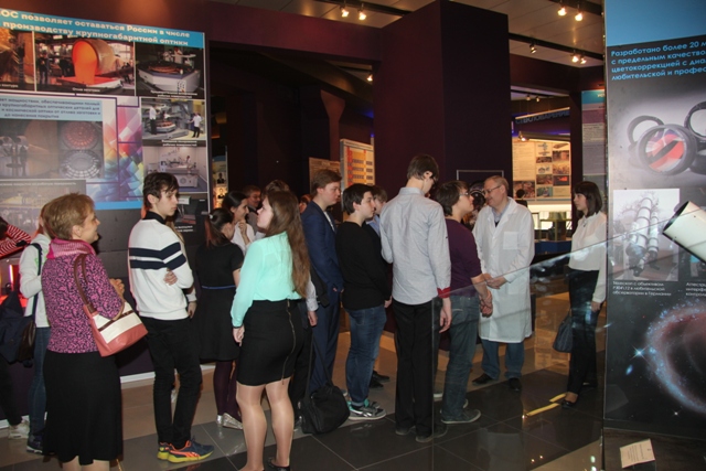 Далее гостям была предложена познавательная экскурсия в заводской музей и цех крупногабаритной астрономической оптики с 6-метровым зеркалом БТА. Школьники и космонавт имели возможность пообщаться с ведущими специалистами завода, посмотреть на уникальную продукцию завода, узнать некоторые тонкости и секреты мастерства лыткаринских оптиков и стекловаров. Участники встречи получили много впечатлений и благодарили организаторов за полезно проведенное время с надеждой на будущие встречи.