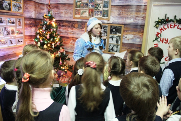 Эти и другие истории услышали маленькие посетители во время своего путешествия по сказочному домику. А какая же сказка без волшебства? С помощью ускорителя времени вместе со стеклянной капелькой они перенеслись в петровскую эпоху, чтобы узнать как зародились новогодние традиции в России. Ненадолго оставив своего дедушку в Мастерской новогодних подарков, на встречу пожаловала Снегурочка, которая подготовила для ребят испытания, чтобы потом одарить их интересным подарком. Быстро проходит время экскурсии, и ускоритель времени здесь совершенно ни при чем.