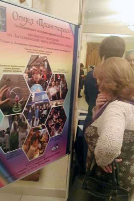 13 февраля состоялась встреча Главы города Е.В. Серёгина с жителями, на которой был представлен отчет о проделанной за год работе. Отдел «Планетарий» Лыткаринского историко-краеведческого музея в фойе ДК «Мир», где проходила встреча, подготовил выставку «Выбор профессии — шаг в будущее!». Экспозиция была посвящена совместным мероприятиям с Лыткаринским заводом оптического стекла, направленным на работу со школьниками и молодежью. Многолетнее сотрудничество двух организаций в области популяризации знаний по космонавтике, астрономии и оптике динамично развивается в разных направлениях. Это организация и проведение экскурсий на предприятие, проведение ежегодных Юношеских чтений «Сила света», совместные выставки, лекции ведущих специалистов оптической отрасли перед лыткаринскими школьниками в стенах музея, празднование Дня космонавтики, Всемирной недели космоса и другие мероприятия. В настоящее время ведется работа по созданию детско-юношеской обсерватории, которая позволит ребятам заниматься исследовательскими проектами по астрономии. В своем отчете перед жителями города Глава отметил важность этой работы для Лыткарино.