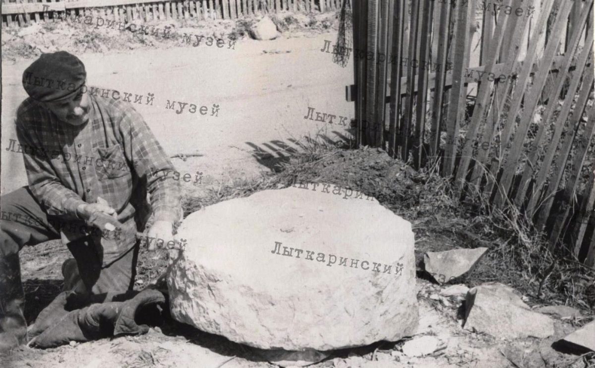 В качестве камня, наиболее подходящего для изготовления жёрнова, обычно служит прочный песчаник. Жёрнов должен быть самым крепким, не дающим в работе трещин и сколов, а соответственно, и каменных крошек. Именно таким требованиям отвечал «лыткаринский дикарь». Добывали камень вручную, при помощи лома. Пробивали в камне желоба или углубления в 1/4 аршина, по которым забивали в камне клинья и ими откалывали камень нужной величины. Обрабатывали выломанный камень различного вида и размера молотками, отбивая сперва большие, затем все меньшие куски. Не верится, что такой ровной поверхности и точных круглых отверстий в жёрновах можно было добиться вручную, без современных приспособлений!