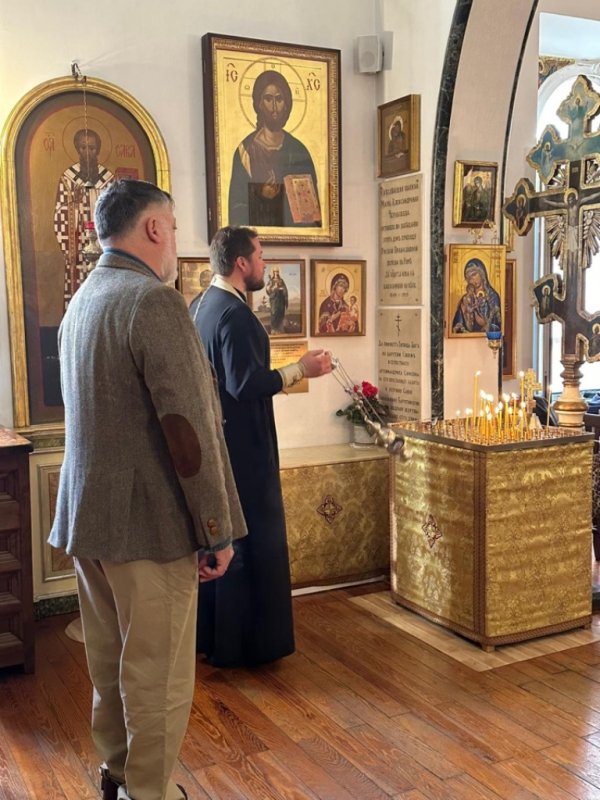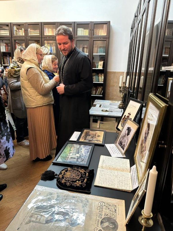 После заупокойной литии, которую совершил настоятель храма священник Сергий Воронин, для прихожан и гостей была проведена экскурсия по приходскому музею. Музейное пространство было создано в 2023 году к юбилею Никольского прихода. Затем состоялось открытие выставки фотографий, документов, личных вещей, связанных с жизнью в Риме отца Симеона и семьями Чернышевых, Барятинских, Абамелек-Лазаревых, Зотовых.