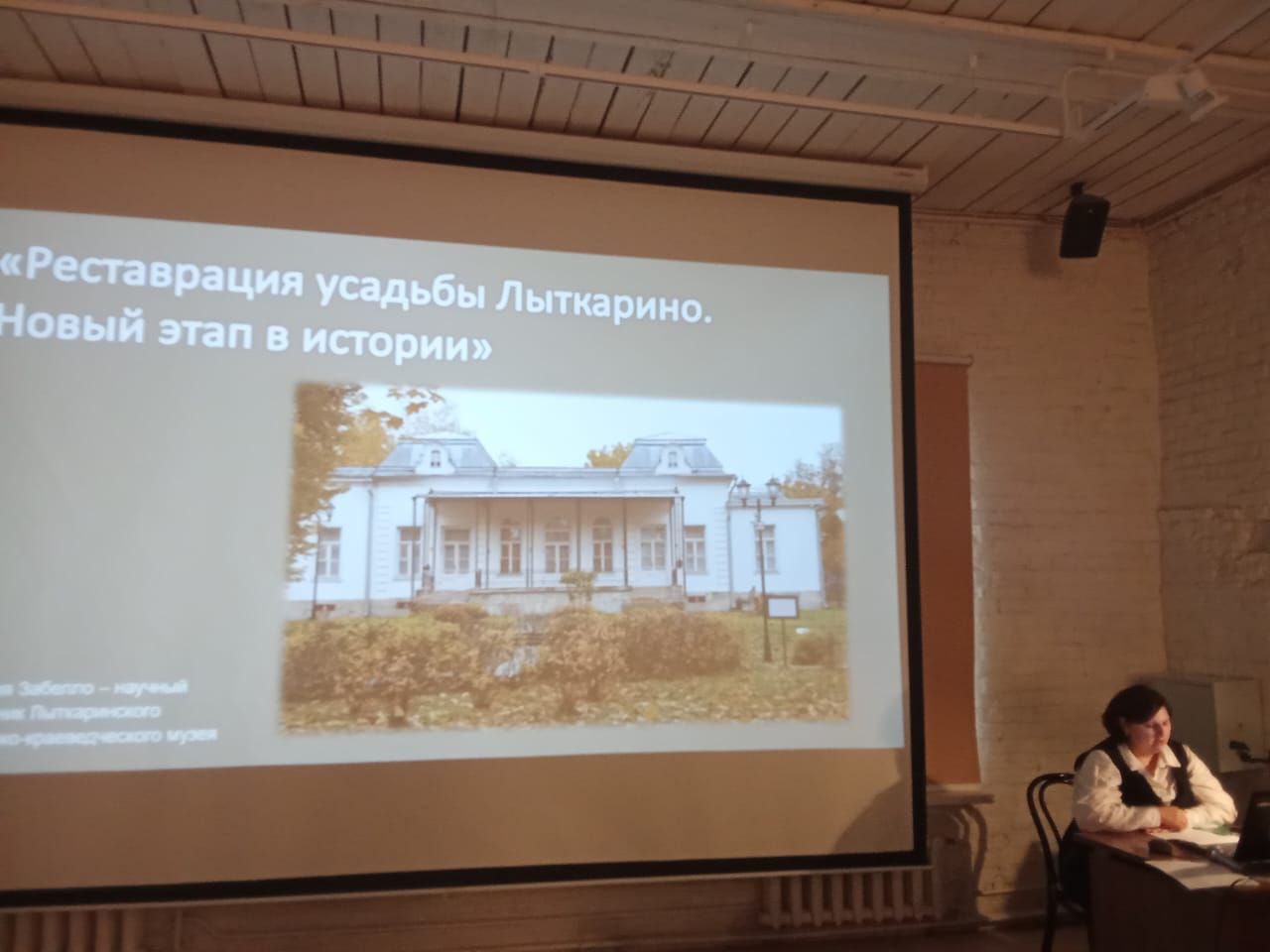 Научный сотрудник Лыткаринского музея Наталия Забелло приняла участие в научной конференции «Усадебная мемуаристика и жизнь усадебного мифа сегодня», организованной Обществом изучения русской усадьбы в Государственном музее архитектуры имени А.В. Щусева. Докладчик представила исследование на тему «Реставрация усадьбы Лыткарино. Новый этап в истории», подчеркнув значимость проблем сохранения и возрождения русских усадеб в современном мире.