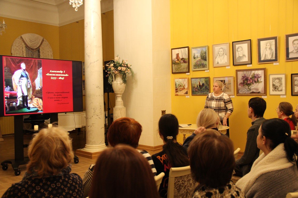19 ноября 2025 года в большой усадебной гостиной состоялась лекция-беседа о блистательной жизни и загадочной смерти русского императора Александра I. Она была приурочена к 200-летию с даты его безвременной кончины. Директор Лыткаринского музея Надежда Голубева рассказала собравшимся о ярких страницах биографии Александра Павловича, получившего при жизни от своих подданных титул «Благословенный».