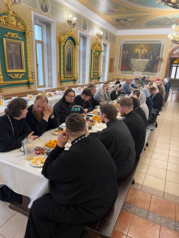 После короткого молебна и трапезы гости конференции смогли узнать о тонкостях проведения экскурсий в храмах и монастырях и опыте сотрудничества с туристическими агентствами и музеями от экскурсовода Давидовой пустыни Натальи Сюсель и других служителей монастыря.