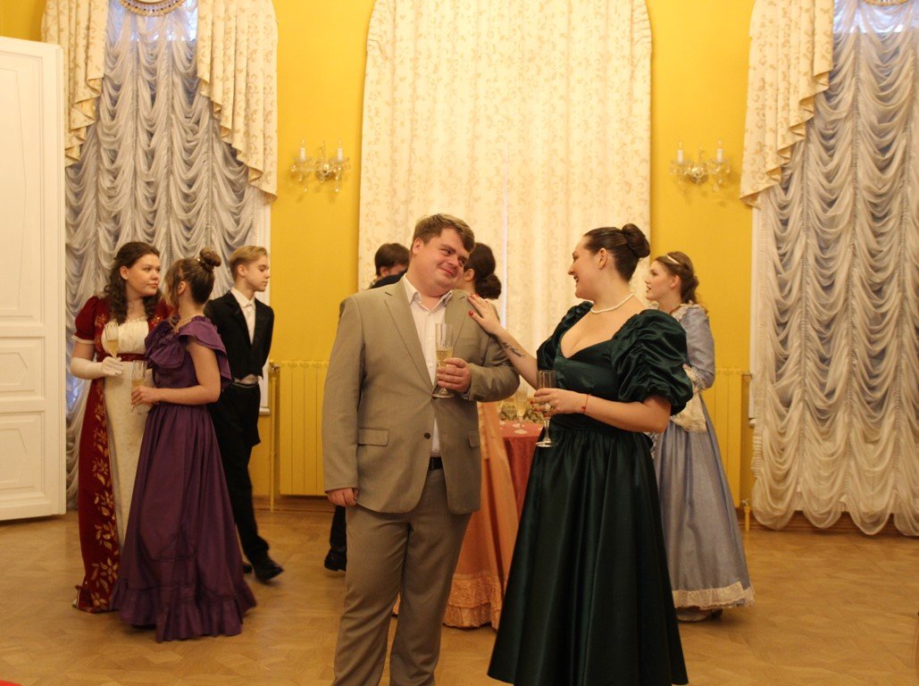 Торжественное мероприятие «Во славу Отечества» состоялось в Лыткаринском историко-краеведческом музее. Уходящий 2025 год Президентом РФ был объявлен годом героев Отечества. Во славу незабываемых подвигов защитников Родины во время Отечественной войны 1812 года был дан роскошный бал, участниками которого стали студенты Политеха «Лыткарино». Присутствовали на мероприятии почетные гости – заместитель главы городского округа Лыткарино Е.В. Забойкин, директор Лыткаринского музея Н.В. Голубева, директор Политеха «Лыткарино» О.Г. Савельева.